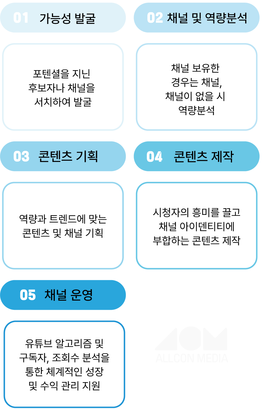올콘미디어는 크리에이터 기반의 제작 역량과 다양한 경험을 바탕으로 브랜드를 홍보하고 제품을 판매하는 솔루션을 제안합니다.