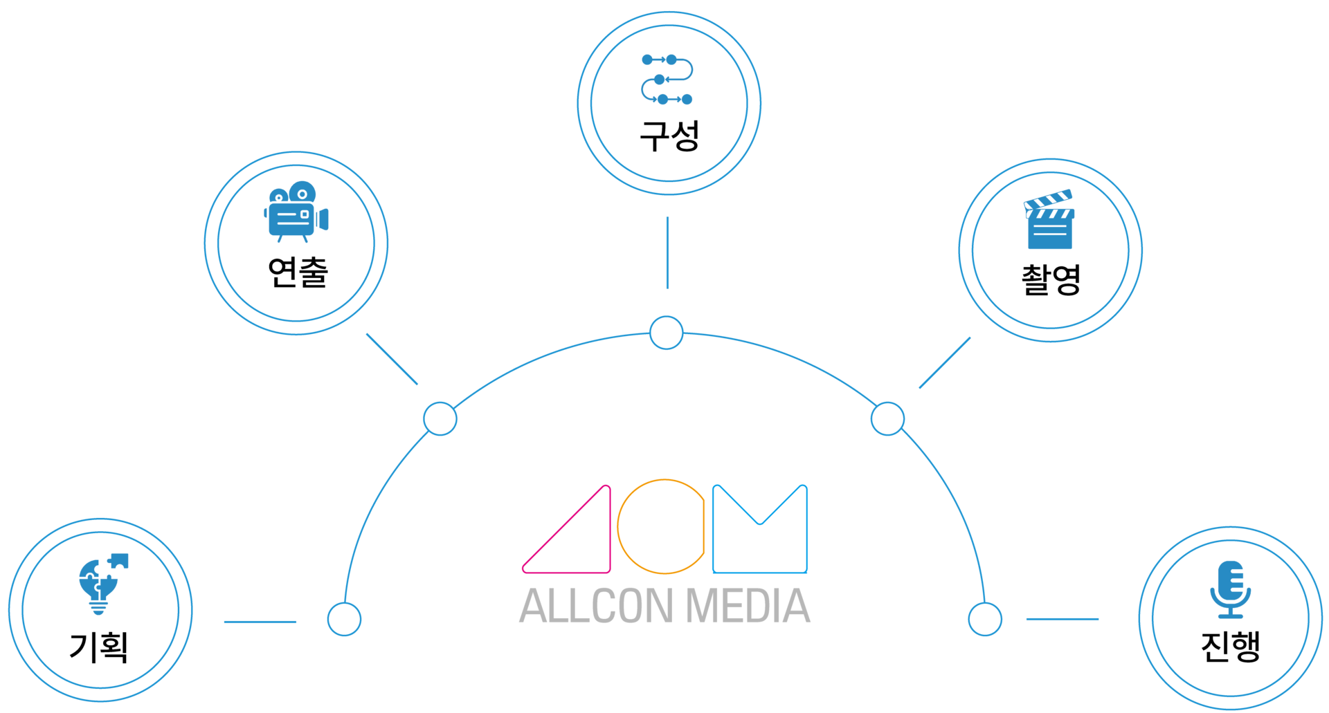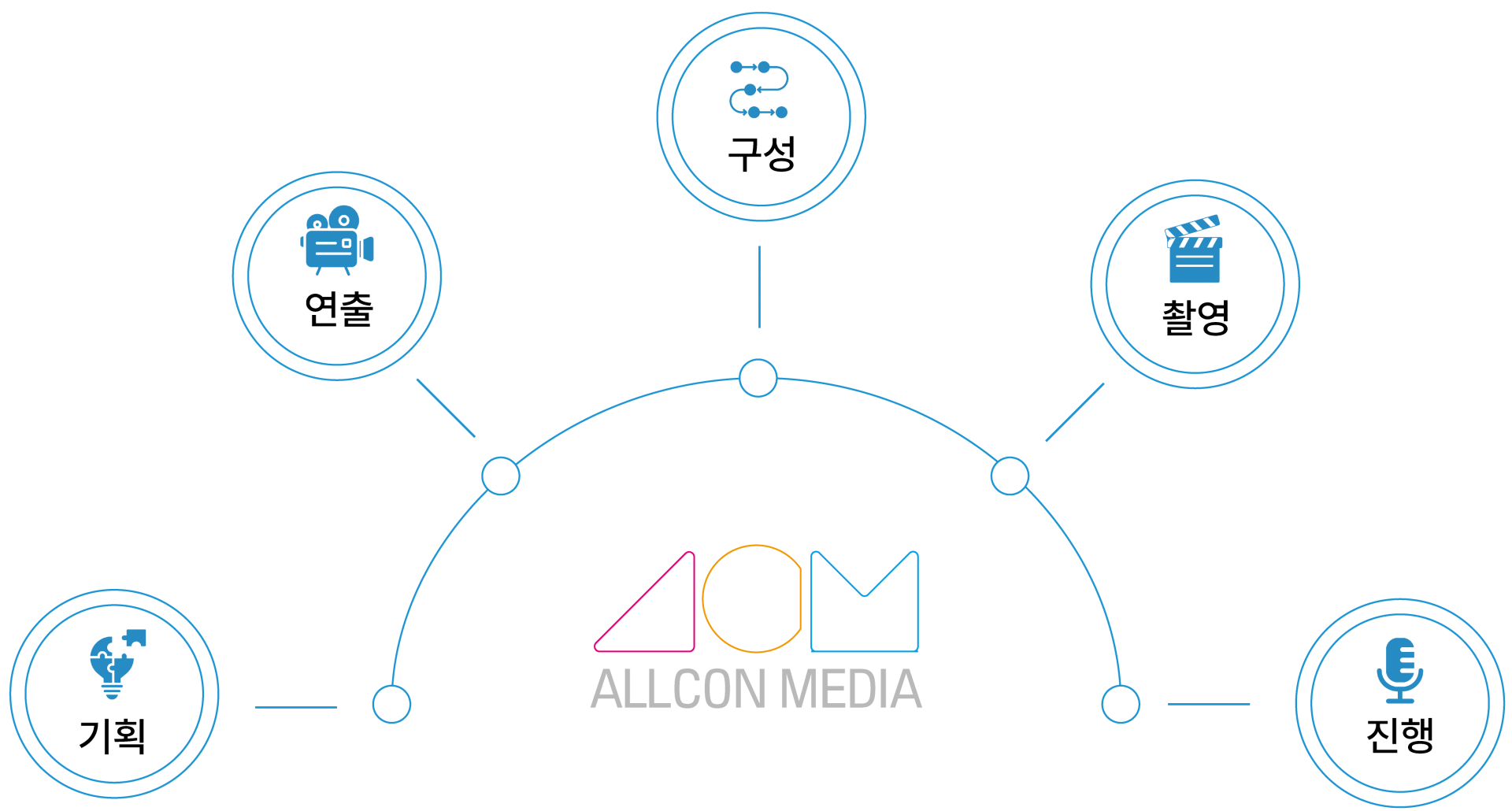 올콘미디어는 프로듀서, 방송작가, 아나운서 등 콘텐츠 기획 • 제작 전문가들로 구성되었습니다.